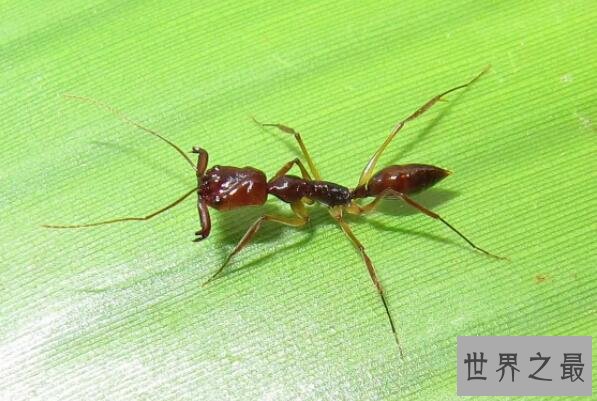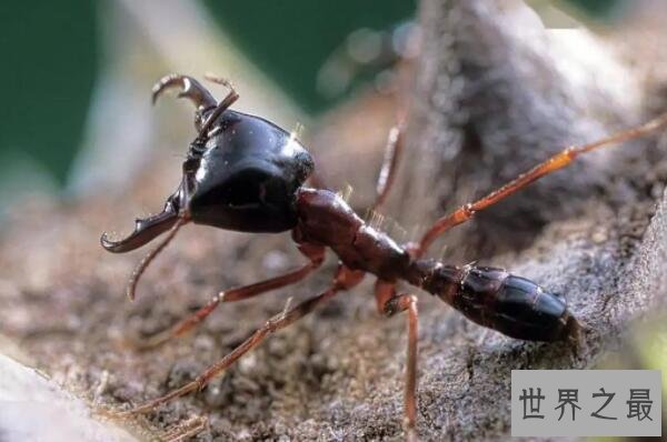 牛头犬蚁是一种体长在15至40毫米左右,主要分布在澳洲地区的蚂蚁,这些有着锋利的螯刺和锯齿状鄂部的昆虫除了有惊人的攻击速度,还有极强的弹跳能力,最高可跳至胡峰这样的飞行性昆虫,将蛰刺刺入其中吸取营养,这种蚂蚁还有蜇伤人的吉尼斯世界纪录。