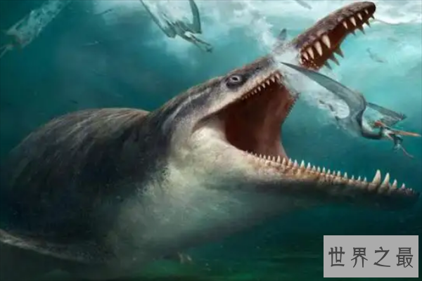 沧龙是海洋里体型最大的顶级猎食者,也是史前统治地球的十大动物之一,在白垩纪中晚期灭绝,体长最长可达17米,重量可达16吨,拥有锋利的牙齿和巨大的头部,性情凶猛,主要以蛇齿龙、金厨鲨、薄片龙为食