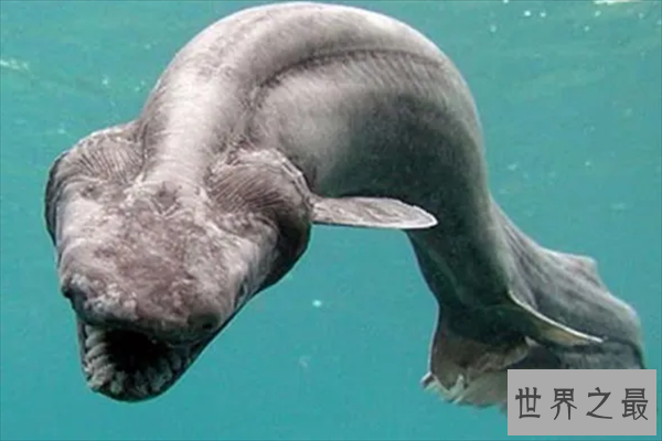 皱鳃鲨是一种生活在深海域的鲨鱼,也是最原始的一种鲨鱼,有活化石之称,平时以其他鲨鱼或者鱼类为食,嘴巴很大,能够将猎物一整个吞下。