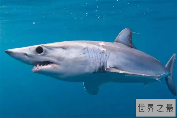 灰鲭鲨是一种生活在热带或温带海域的大型鲨鱼,身长最长可达4米,是所有鲨鱼中游泳速度最快的,性情凶猛,能够在母体子宫中残杀同类,平时主要以一些鱼类为食物来源。