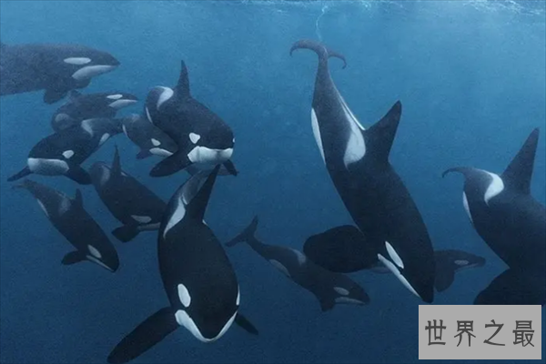 虎鲸是一种主要生活在极地和温带海域的群居动物,身长最长可达9.75米,体重高达5.5吨,游泳速度快,每天可游160公里,牙齿锋利,能够撕碎各种猎物,主要以鱼类、其他鲸类为食,而且食量也比较大,每天要吃45千克的食物。