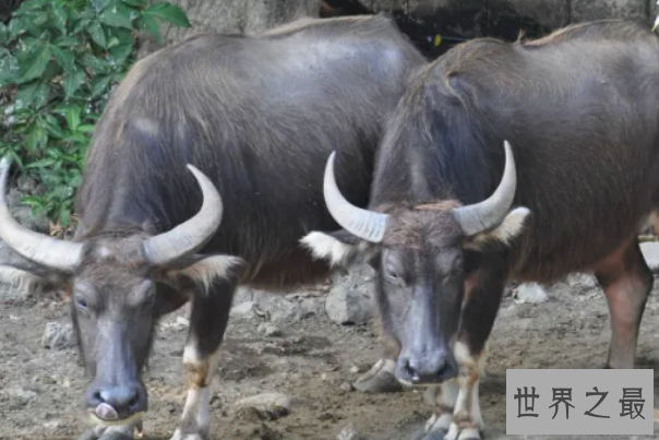 亚洲水牛主要以体格粗大而著称,是由5000多年前的野水牛训化而来,其最大体重重大1200千克,而野生的水牛具有非常锋利的牛角,攻击力特非常强,可以打败很多大型动物,只有孟加拉虎是其天敌。