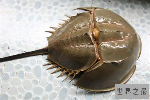 马蹄蟹其实不是螃蟹,而是一种节肢动物,有四只眼睛,两只小眼睛对紫外线比较敏感,最早出现在寒武纪时期,因发现至今,它的外貌形状没有变化,也被称为活化石。