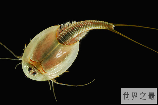 蝌蚪虾也叫佳朋鲎虫、马蹄管子,它最早出现在3亿年前,也是世界上十大古老海洋动物之一,虽然它的生活周期不长,只有90天,但它的滞育期高达25年,它的卵可以在25年后孵化。