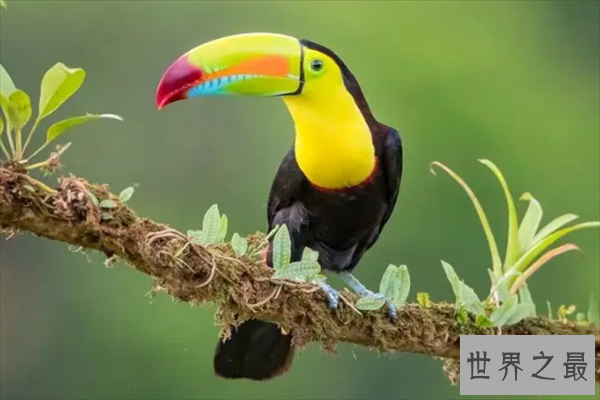 彩虹巨嘴鸟是一种主要生活在雨林地区的群居鸟类,也是伯利兹的国鸟,体型中等,羽毛颜色艳丽,主要以蓝黑色、黄色和红色为主,它的叫声比较嘶哑,平时主要以各种果实和昆虫为食。