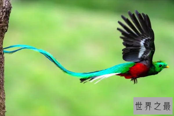 凤尾绿咬鹃是一种生活在南美洲丛林的鸟类,也是世界上十种最特别的鸟类之一,体型较小,羽毛颜色艳丽,主要以绿色、蓝色和黑色为主,平时主要以各种昆虫和植物果实为食物来源。