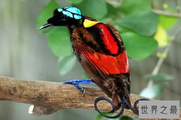 威氏极乐鸟也叫威尔逊极乐鸟,是一种主要生活在西巴布亚地区的鸟类,体型较小,羽毛颜色主要以蓝色、红色和黑色为主,最大的特点是尾羽弯曲呈银色,平时主要以水果和一些小昆虫为食。