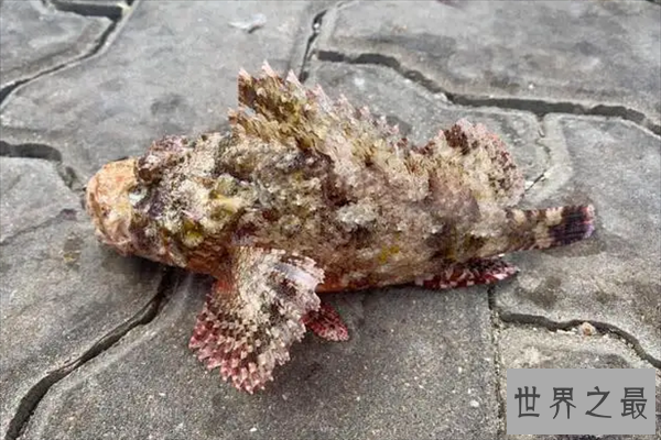 石头鱼也叫玫瑰毒鲉,主要生活在海底岩礁区域,善于伪装,身上被含有毒素的背刺覆盖,能够轻易的刺穿脚掌,也是十大最毒的海洋生物之一,如果不小心踩中的话,会让你一直处于疼痛状态直至死亡。