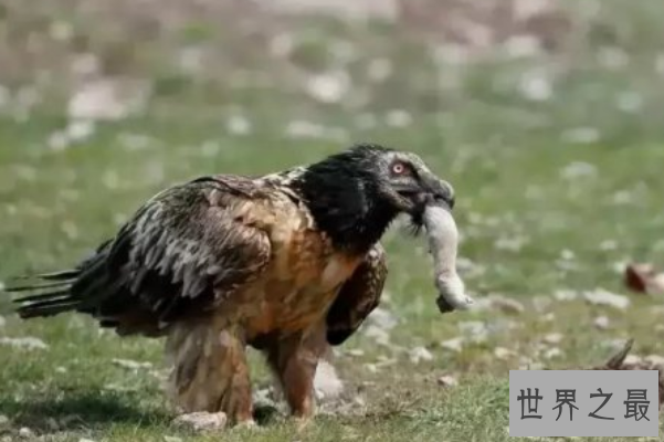 髯鹫是非常恐怖的猛禽,被它瞄准的目标,一般下场都很惨,会先把猎物抓到空中,然后从高空中把猎物丢下来摔死,而且它会把猎物撕成碎片再吃掉。