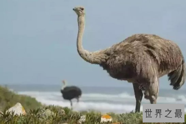 鸵鸟是世界上最大的不会飞的鸟类,身高可以达到2.5米,最重的有150千克,看起来就非常可怕,虽然不会飞,可是它速度快呀,奔跑起来能达到69公里每小时,它主要攻击入侵领地的动物和人类,特别是它感觉自己的孩子受到威胁时。