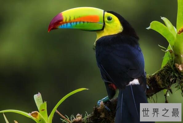 彩虹巨嘴鸟是因它巨大的嘴巴而得名的鸟类,这个中型攀禽比较特别的是因为它们的鸟嘴上分布有彩色的斑块,且它们的体羽也分为多种颜色,如柠檬黄色、藏蓝黑色和鲜红色,目前这个主要食用昆虫、果实和种子的鸟类被伯利兹定为国鸟。