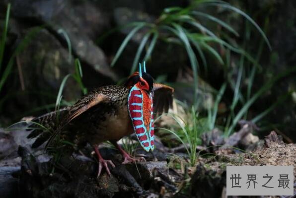 黄腹角雉是一种体长在50只65厘米,仅在中国有所分布的特有物种,它们的腹部羽毛呈皮黄色,在身上还长有翠蓝色肉角和艳丽肉群,这个动物因栖息地的缩小和孵化繁殖率较低,使得种群数量不断下降,因此目前成熟个体的数量不超过5000只,是被定为一级保护的鸟类动物。