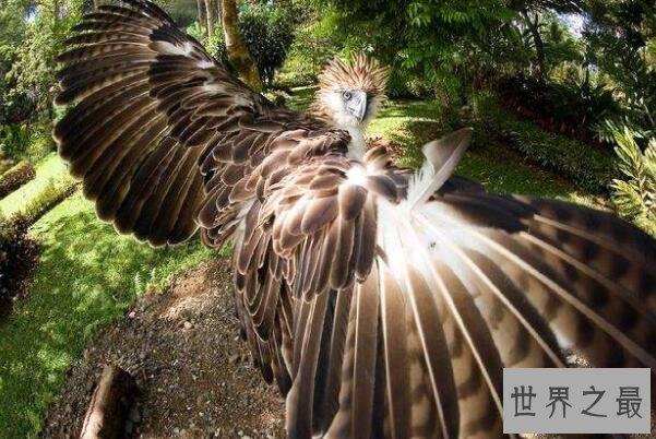 食猿雕又被称为菲律宾雕,是翼展可达2.5米,体长在91厘米左右的世界上第二大鹰类,并菲律宾定为国鸟,这个目前现存数量十分稀少的鸟类通常以各类树栖动物为进食来源,除此之外还会捕食家畜,尤其是在捕食树栖动物时十分凶残,会先啄瞎,再将对方撕碎成块。