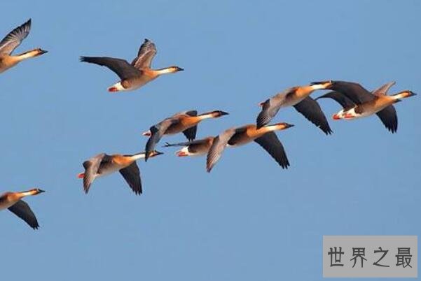 大雁是会六只组成一个雁队,或以6的倍数的数量组成一个雁队的天鹅类大型候鸟,它们会在飞行时通过热情的性情来给同伴鼓舞,或者利用叫声鼓励疲惫的同行同伴,它们在飞行过程中排成的人字形或一字型也是有道理的,这样有利于防御敌害。