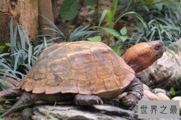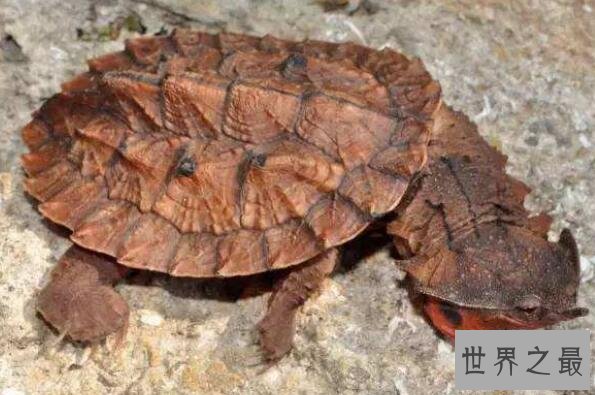 枯叶龟是一种非常古老的大型水栖龟类,它们有着三角形一样的扁平的头部,因龟壳和枯叶非常相似而得名,颜色也是枯叶一样的枯黄色。