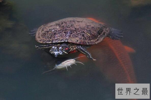 巴西彩龟是原产于密西西比河沿岸的一种水陆两栖龟类,它们性情非常暴躁,和其他的龟养在一起会排挤其他龟类,而且它们经常是沙门氏菌的携带体。