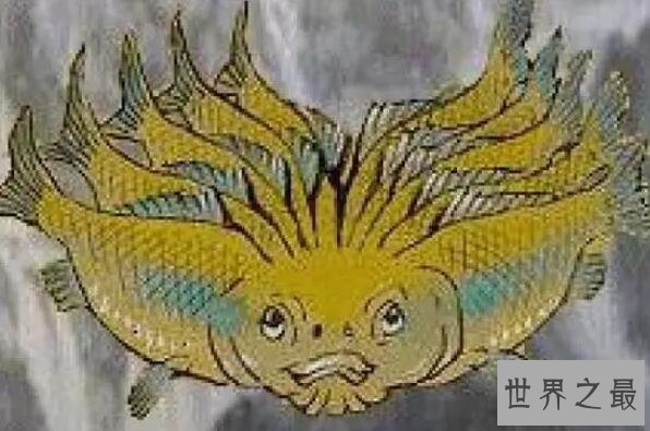 文鳐鱼也是《山海经》中记载的一种神鱼,它的形状和鲤鱼相似,长有鱼的身体和鸟的翅膀,白头红嘴,经常在夜间飞翔,叫声像鸾鸡,据说吃了它的肉可以治癫狂,但它是一只祥瑞之兽,出现就预示着五谷丰登。