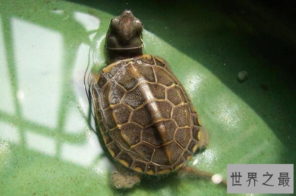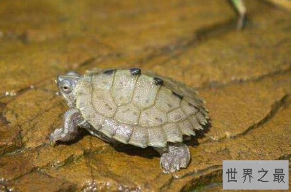 密西西比地图龟是地图龟中最常见、价格最便宜的一种,它们的外表非常漂亮,对环境的要求也比较低,在小玻璃缸里也能够健康生长,所以很受人们的喜爱。