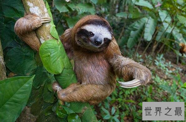 三趾树懒是世界上速度最慢的哺乳动物,它们的身上长满了灰棕色的毛发,一生都在树上生活,不能站立也不能行走,视觉和听觉都很差,行动非常缓慢,主要靠嗅觉觅食。