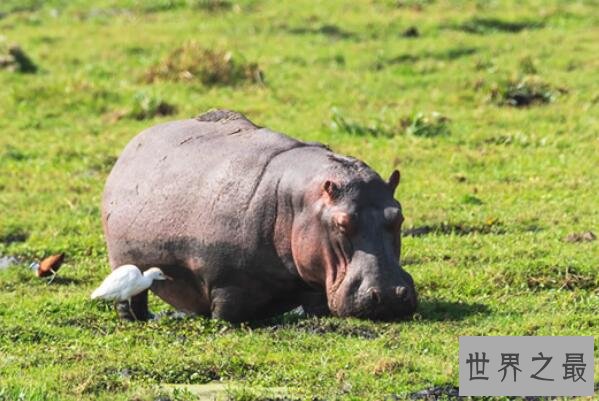 河马是杂食性淡水物种,体型虽大却可轻巧的浮在水中,还能在水中待超过5分钟。即使是陆地上第三大的动物,其短距离奔跑速度却能达到时速40千米。生活于非洲热带水草丰盛地区,常由10余只组成群体,有时也能结成上百只的大群。不过值得一提的是河马皮肤十分光滑坚硬,狮子与鬣狗想要扑上去会滑下来,想要撕咬也会无从下口,就像一个坚硬光滑的肉气球,拿它一点办法也没有。甚至连非洲最大鳄鱼尼罗鳄也不是河马的对手,而且河马的咬合力也十分的惊人,是食草动物之中最大的。