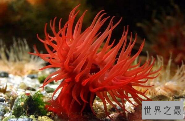 等指海葵是主要分布在地中海和大西洋东部海域的一种海葵,它们的体色变化大,有深红色、红褐色或者乳黄色等等,它们触角的刺丝囊能够喷射出含有剧毒的毒液,这种毒液足以引起动物死亡。
