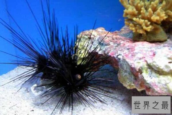 刺冠海胆在世界很多海域都有分布,它们也是十大最危险的海洋生物,它们长长的棘刺上含有毒液,如果被棘刺扎进皮肤,能够使人心跳加快甚至痉挛。