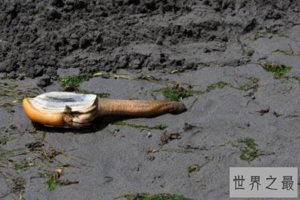 太平洋潜泥蛤也被称为象拔蚌,是一种主要生活在太平洋海域的大型贝类,它们生活在海底的泥沙中,体重连壳可达3.6千克,肉还可以食用,具有很高的经济价值,它们的寿命也可以达到100多年。