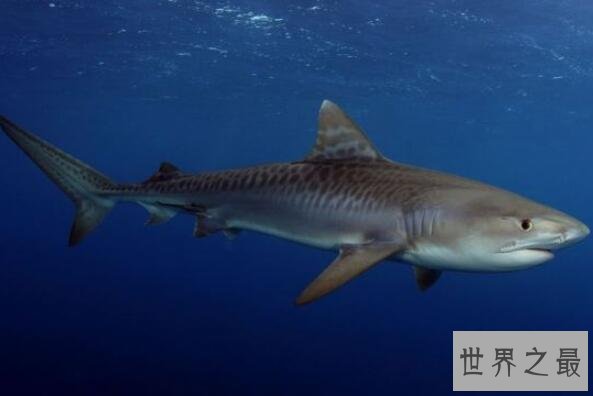 虎鲨是主要生活在热带和暖温带海域上层的一种大型鲨鱼,体长一般在3-4米左右,它们的性情非常凶猛,经常捕食海洋中的硬骨鱼类、其他鲨鱼以及海龟海鸟等。