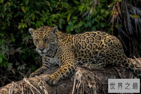 美洲豹这个拥有可达1250磅咬合力的世界现存第三大的猫科动物,是整体身体形状接近于虎,美丽的花纹类似于豹的喜欢游泳和独行的猫科动物,而这个顶级掠食者会利用可以咬碎猎物头骨和龟壳能力的利齿将自己捕食对象吞入腹中。