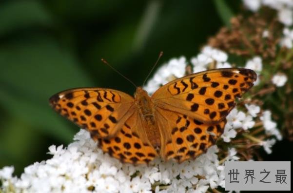 这个蝴蝶翅膀的颜色底色呈现金黄色,上有黑点如同豹纹它们的翅膀纹路可以用来隐藏自己或表现自己发出交配的信号。雄蝴蝶飞翔迅速而雌性蝴蝶较慢飞不长久就停歇,含有盐分的咸味水最能吸引它们。