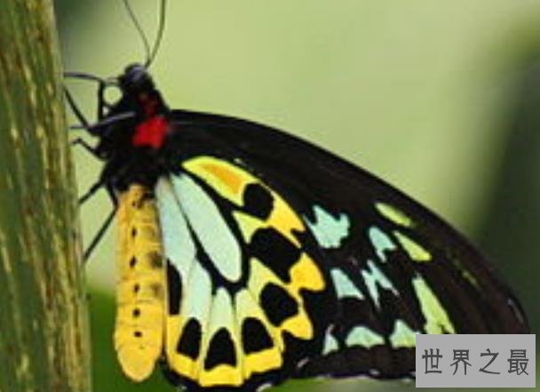 它是属于裳凤蝶类,是一种大型的蝴蝶翅膀上半部分为优雅的黑色下半部分则是金子般的金黄色,虫体背部还有红色的斑点从它的侧面看过去像一位穿着金色裙子的戴着红色宝珠高贵女皇。