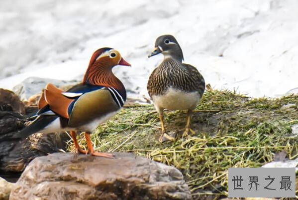 鸳鸯是主要栖息在山地森林河流、湖泊、芦苇沼泽等地的雁形目中型鸭类,是有着艳丽冠羽、鲜艳华丽的羽色、醒目独特的白色眉闻的中国著名观赏鸟类,因这类动物通常是结伴出行,因此还被看成是爱情的象征。