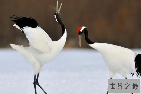 丹顶鹤是一种体长在120至160厘米之间,通体呈白色,有着鲜红色头顶、黑色的喉部和颈部的大型鹤类涉禽,而这种鸟类在国内主要分布在东北地区,并常常进行家族群、成对或小群进行活动。