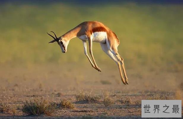 跳羚分布在安哥拉、纳米比亚、南非地区居住位置不太固定,在旱季的时候会成群结队寻找新的草场和水源地。它们背部的中央有一条白色的褶皱,当跳羚察觉危险来临而奔跑时褶皱就会展开向同伴发出信号时速可达94公里。