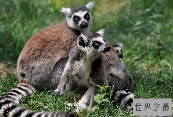 灵长类的环尾狐猴分布于非洲大陆,它们的攀爬能力和跳跃能力都很强势长期的攀爬与跳跃环尾狐猴的速度也是不可小觑的。环尾狐猴还有一只令人印象深刻的黑白交错毛色的尾巴以及一双黑色调的眼圈让它面部多了几分幽默感。