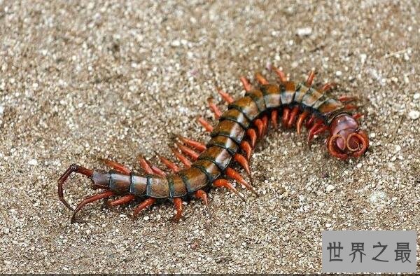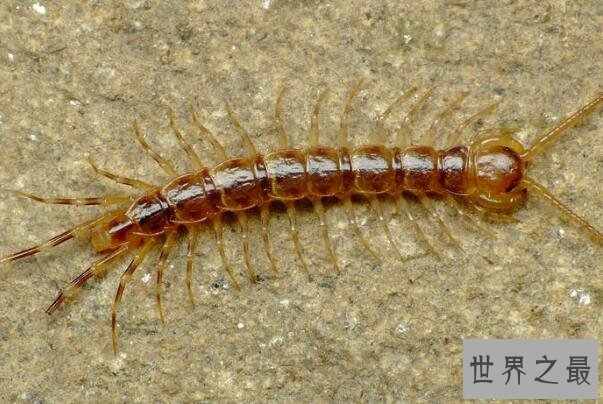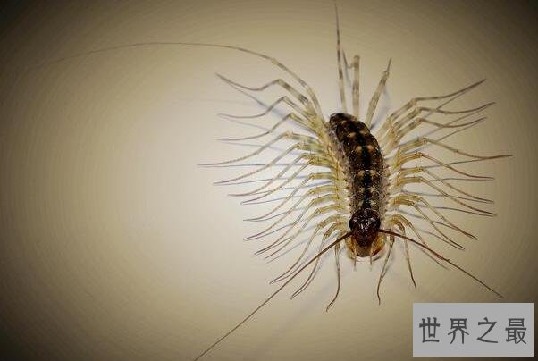 蚰蜒也被叫做“钱串子”,在十大脚最多的动物排名中排第四,也是中国八大最毒的毒虫之一,身体颜色主要黄灰色为主,在居住的房屋或者潮湿的枯木附近就可以见到,体长大约是约25到50毫米,在我国分布广泛,而且爬行速度很快。