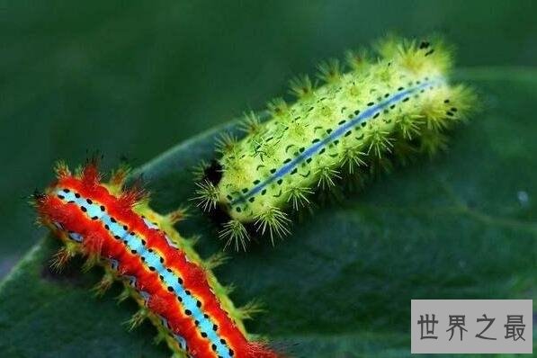 毛毛虫的种类也非常的多,幼虫身上很多的毛,经常在树叶、树干上可以看到,在全球各地都有分布,品种也有十几万种,而且还有很多幼虫身上的毛有毒,不小心碰到的话可能会引起皮肤红肿。