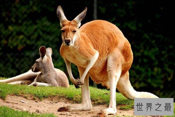 红袋鼠是一种体长在100-160厘米尾长在75-120厘米之间的世界上最大的有袋类动物,因身体体色通常成红或棕红色而得名,鼻孔两侧黑色的须痕是这种动物独居的特征,而这种广泛分布在澳大利亚的动物非常善于跳跃,奔跑时每一眺可达9米。