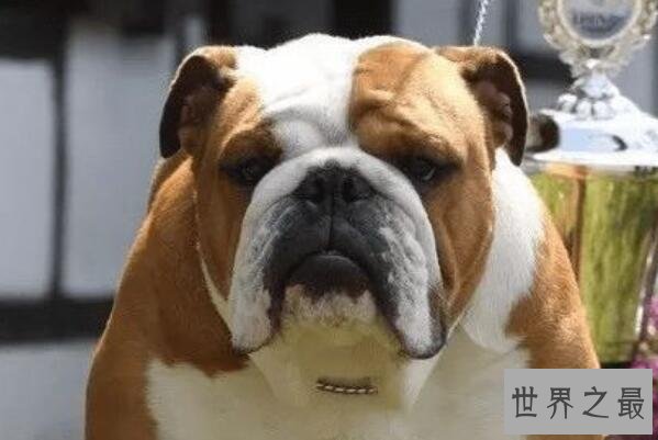 英国斗牛犬体型不大,五六十厘米左右,面部褶皱,也是很有辨识度的,被很多的地方作为吉祥物,也是一种观赏性犬,在世界十大最贵的狗之中排名第五位。
