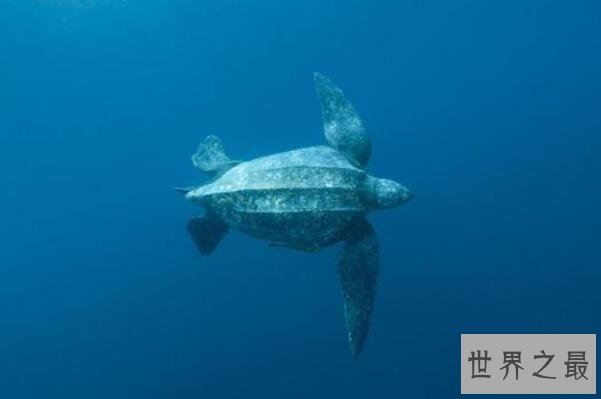 棱皮龟是一种有着较为发达的前肢,桨状四肢,极强且迅速游泳能力的世界最大的海龟品种,最长体长可达2.6米,以大西洋和太平洋的热带海鱼中上层为主要栖息地,而这个世界上最大的龟鳖类动物最深刻下潜至1300米处。