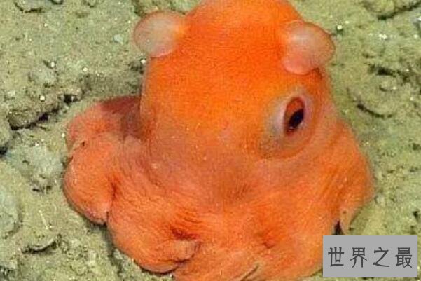 小飞象章鱼是一种有着类似大象耳朵的鳍,身体呈半胶质的具有奇特外形的须蛸科烟灰蛸属海洋生物,通常以400至7000米的海水深度为主要栖息地,仅在寻找猎物是会在还床上徘徊一定的距离。
