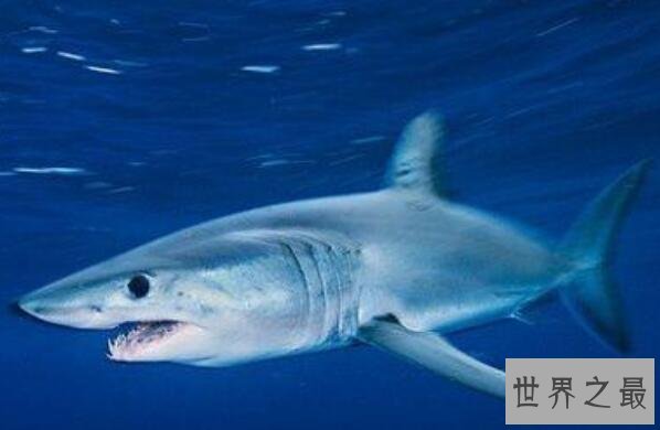 灰鲭鲨也叫尖吻鲭鲨,它们性格凶猛,体长大约为2-3米,主要栖息在世界各地的热带和温带海域,是鲨鱼中游泳速度最快的一种,最快可达96公里每小时。