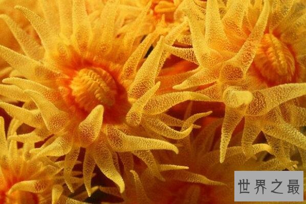 黄海葵虽然看上去很像黄色的花朵,但其实它们是一种动物,它们拥有几十条触手,还能够释放毒素,很少会有动物去靠近它们,所以它们几乎没有天敌。