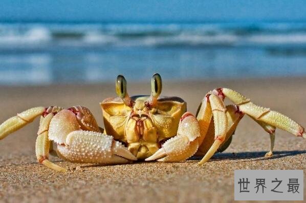 黄色在螃蟹家族中还是比较常见的,它们通常都有着两只小提琴一样的螯,喜欢栖息在海边的各种岩石下或洞穴里。