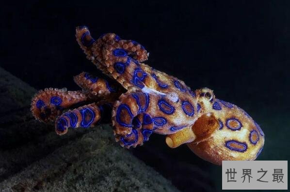 蓝环章鱼是一种很小的章鱼品种,它们的皮肤呈黄褐色,有着鲜艳的蓝色圆环,它们个头虽小,却藏着剧毒,被咬上一口就能致人死亡,是世界十大动物杀手之一。