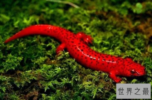 红蝾螈是一种无肺螈科动物,全身呈艳红色,并且布满黑色斑点,它们多栖息在山地或平地,喜欢在夜间捕食。