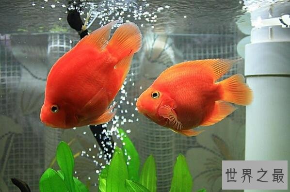 血鹦鹉是十大最奇特杂交动物之一,它们全身鲜艳通红的鱼,又被称为“财神鱼”,胖嘟嘟的体形和鲜艳的颜色十分讨喜,是非常受人们喜爱的观赏鱼类。