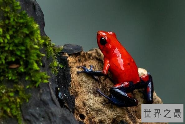 草莓箭毒蛙被认为是全球最美丽的青蛙,但同时也是含有剧毒的青蛙之一,它们体形较小,颜色艳丽,毒性可以致死。
