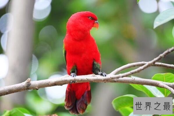 红色吸蜜鹦鹉的身体几乎全部是红色,飞羽带有一些,黑色和蓝色鸟喙比一般鹦鹉的长,主要以花粉和花蜜为食。