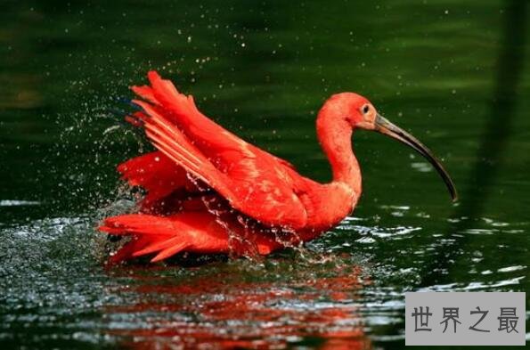 美洲红鹮全身都是鲜红色,它们栖息在沼泽中,就如同一团团火焰,十分引人注目,它们是世界上颜色最红的鸟类,具有极高的观赏价值。